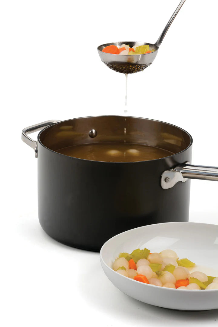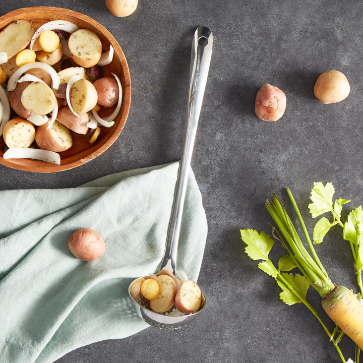 - Perfect for serving, use this perforated spoon to separate solid foods from liquids.