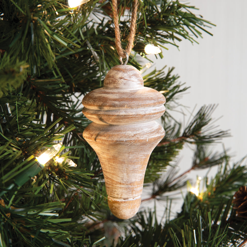 Adorn your tree with a simple, yet stunning touch with this set of wood top ornaments. Each are crafted carefully as a set of three with jute string to hang from. Crafted with character, no two pieces of wood will be identically the same. Smallest is 1¾'' dia. x 3¼''H.