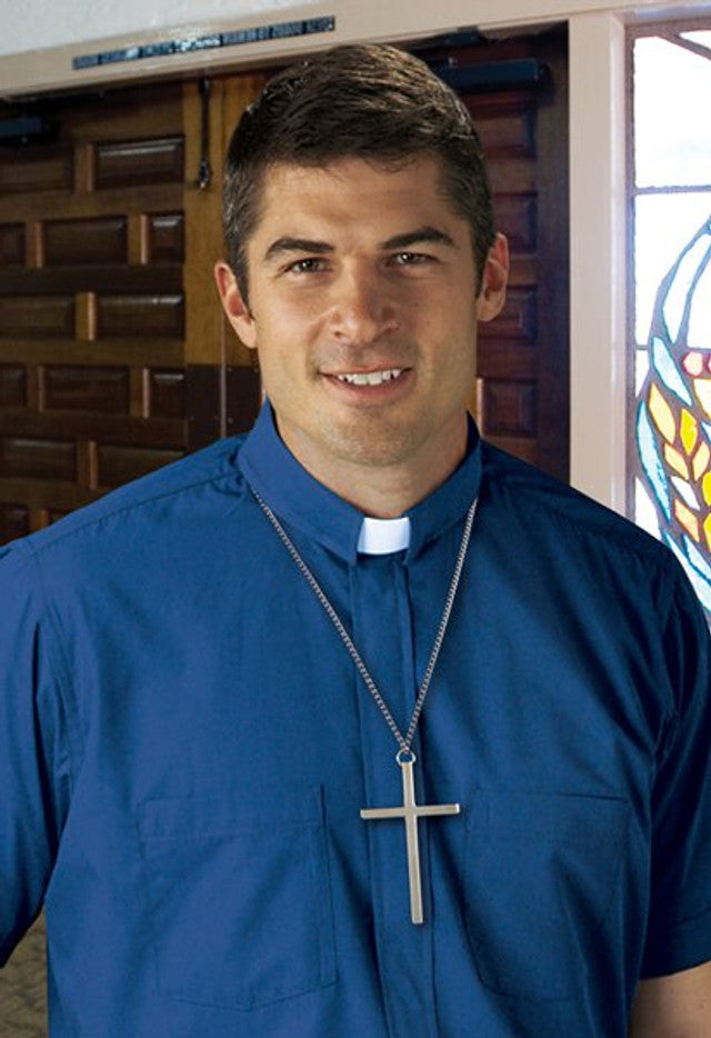 Silver plated clergy cross includes a 32" L chain and comes with a velvet pouch for safe storage. Not suited for engraving.