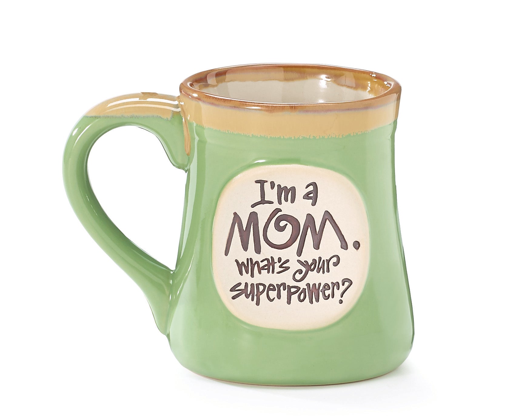 - Raised cream message area on front with "I'm a MOM. What's Your Superpower?" Individually gift boxed.