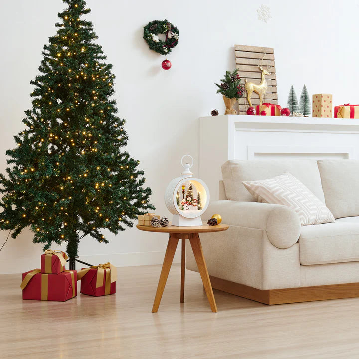 Tabletop White Christmas Holiday Winter Snowman Scene Diorama Lighted Lantern Decoration - Oval